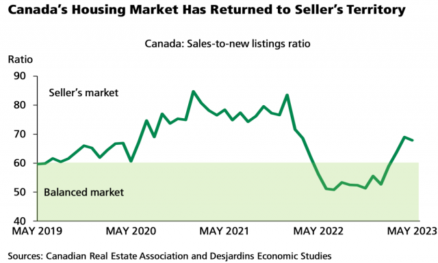 Desjardins今年早些时候的一项研究发现,加拿大的新屋开工量每年需要增加10万套,才能抵消永久居民数量增加带来的价格上涨压力。新移民的涌入已经对房地产市场产生了影响,尽管利率处于几十年来的最高水平,但今年房地产市场仍出现反弹。